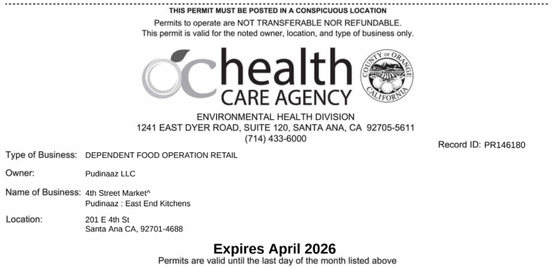 Health Department Permit - OC